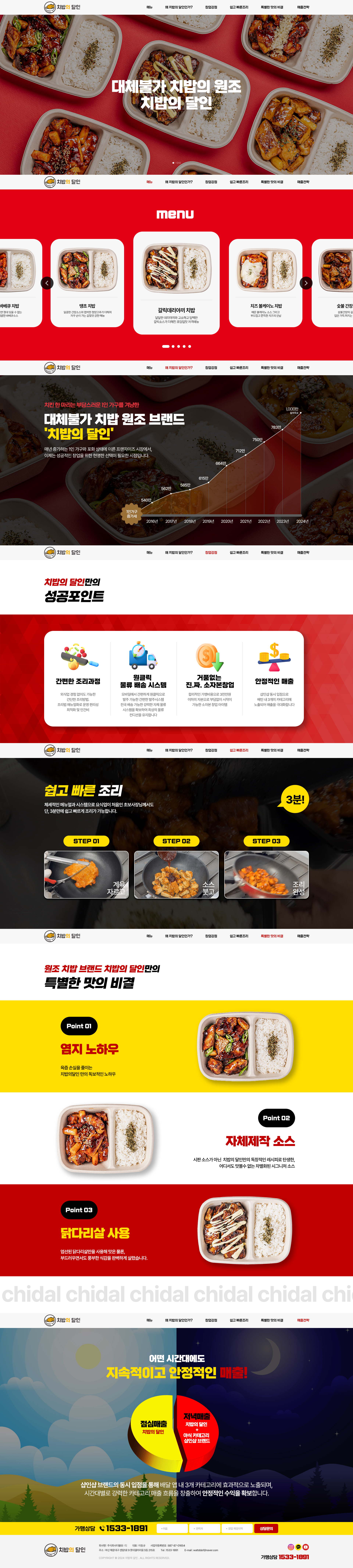 간편하게 조리하고, 소자본으로 창업하고자 하는 점주들을 공략하여 중요한 포인트만 소개하는 원페이지형 홈페이지로 제작되었습니다.